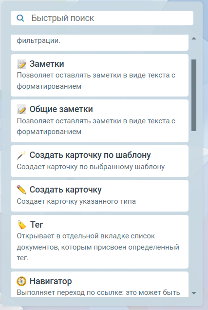 - новую карточку указанного типа (виджет “Создать карточку”).