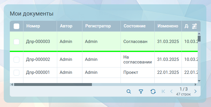 В виджет встроен счётчик текущих документов, обновляющийся автоматически раз в час, что позволит в любой момент отследить текущую динамику. Цвет виджета-кнопки на дашборде соответствует цвету выбранного тега.